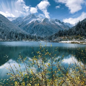 白雪覆盖下的火山湖泊